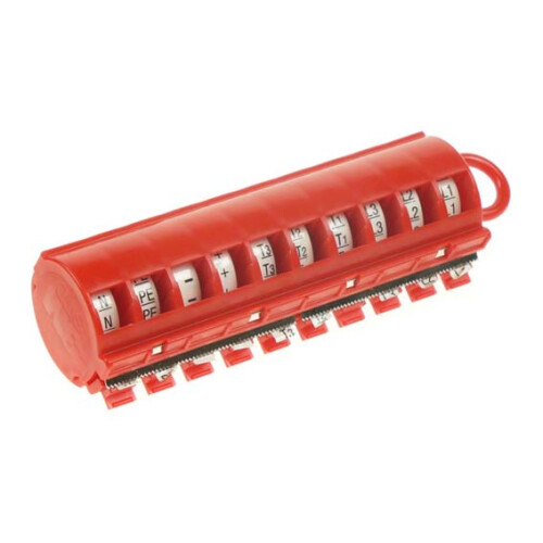 | Sada samolepicích značení vodičů s pouzdrem - znaky elektro (L1,L2,L3,T1,T2,T3,+,-,PE,N) |