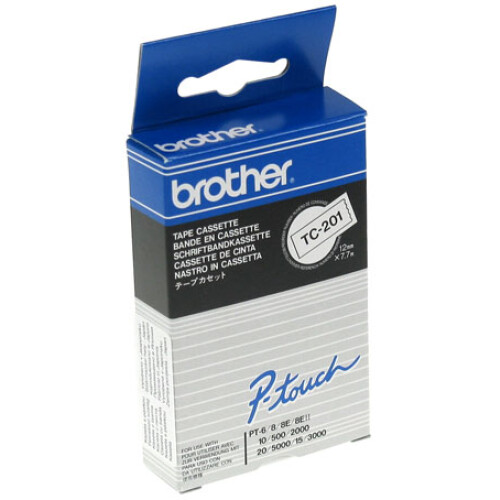 | Páska BROTHER plastová samolepicí šíře 12mm, černý tisk na bílé pásce, návin 7,7m |