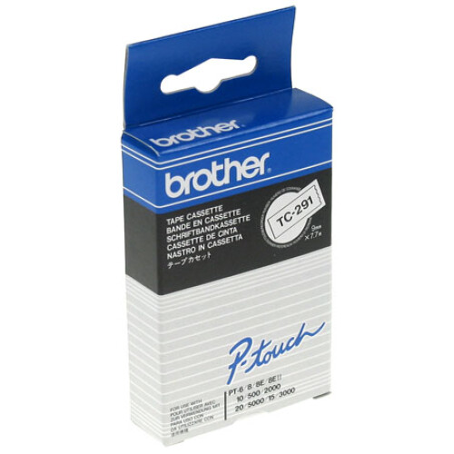 | Páska BROTHER plastová samolepicí šíře 9mm, černý tisk na bílé pásce, návin 7,7m |