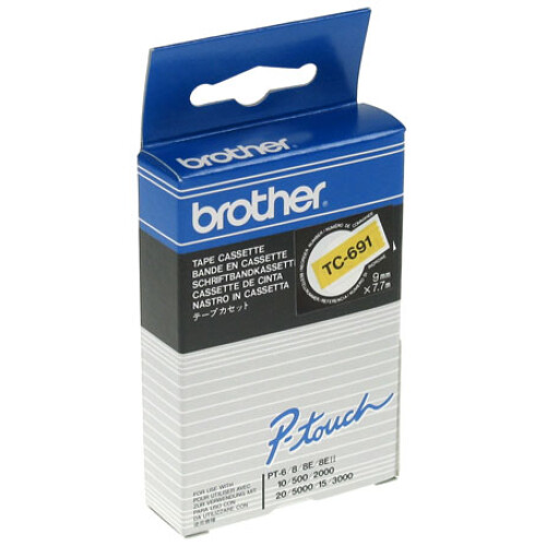 | Páska BROTHER plastová samolepicí šíře 9mm, černý tisk na žluté pásce |