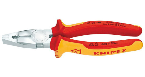 0106190 KNIPEX kleště kombinované do 1000V, chromované, dvoukomponentní rukojeti, délka 190mm