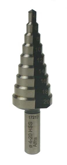 08071 ALFRA vrták stupňovitý pro plech max. 4mm, pro otvory 4-20mm