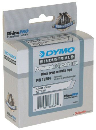 18483,18764 DYMO samolepicí páska RHINO permanentní polyesterová šíře 12mm, černá na bílé 5,5m