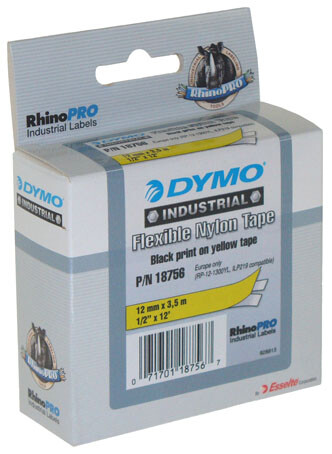18490,18756 DYMO samolepicí páska RHINO flexibilní nylonová šíře 12mm, černá na žluté, návin 3,5m