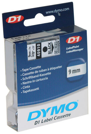 40910 DYMO páska D1 samolepicí plastová 9mm, černý tisk na průhledné pásce, návin 7m