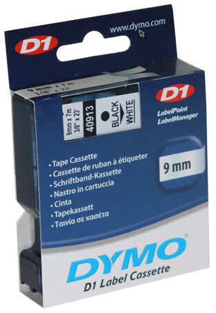 40913 DYMO páska D1 samolepicí plastová 9mm, černý tisk na bílé pásce, návin 7m (po 5ks)