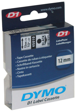 45010 DYMO samolepicí páska D1 plastová 12mm, černá na průhledné, návin 7m