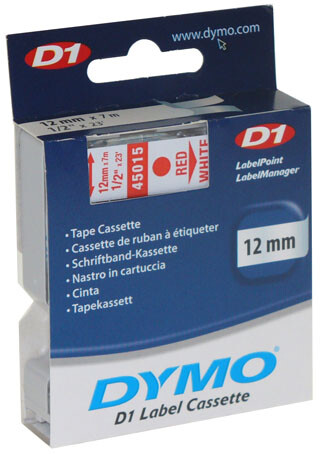 45015 DYMO páska D1 plastová 12mm, červený tisk / bílý podklad, návin 7m