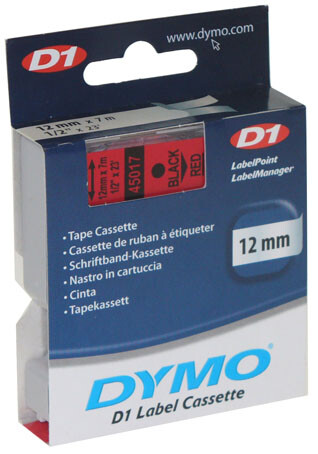 45017 DYMO páska D1 plastová 12mm, černý tisk / červený podklad, návin 7m