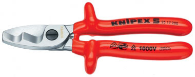 9517200 KNIPEX nůžky na Al a Cu vodiče do průměru 20mm, masivní rukojeti izolované do 1000V