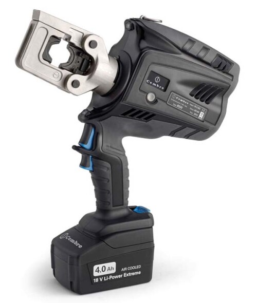 Elektrohydraulické lisovací kleště s výměnnými čelistmi a otočnou hlavicí o 180˚.