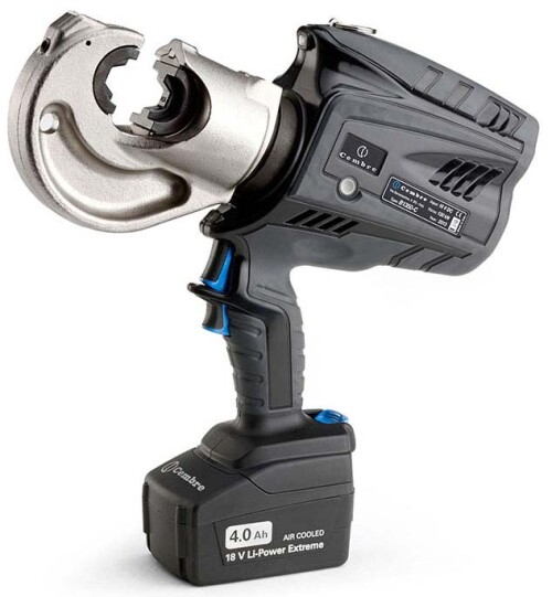 Elektrohydraulické lisovací kleště s výměnnými čelistmi a otočnou hlavicí o 180˚.