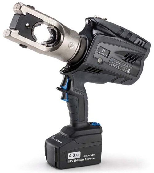 Elektrohydraulické lisovací kleště s výměnnými čelistmi a otočnou hlavicí o 180˚.