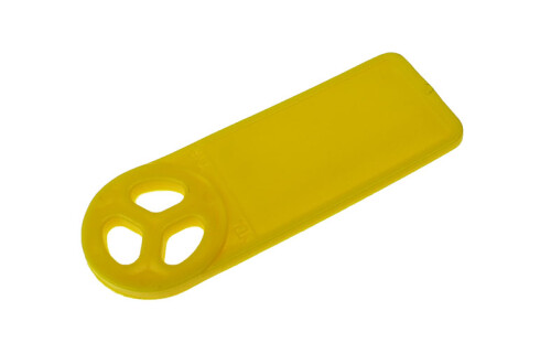 Identifikační kartička (štítek) plastová žlutá, rozměr 30x15mm / celkový rozměr 55x20mm / síla 2-3mm
