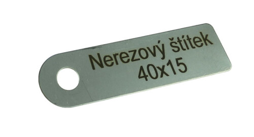 Identifikační štítek nerezový, rozměr 40x15mm / celkový rozměr 55x15mm / síla 0,5mm / otvor 6mm