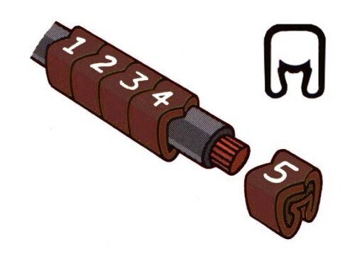 Návlečka na vodič o průměru 4-10mm (průřez 2,5-16mm2) délka 4mm, s potiskem "1", hnědá EURO