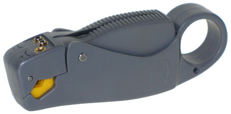 Nůž na koaxiální kabely se třemi hloubkově nastavitelnými břity.