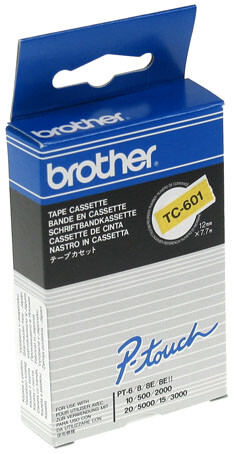 Páska BROTHER plastová samolepicí šíře 12mm, černý tisk na žluté pásce, návin 7,7m