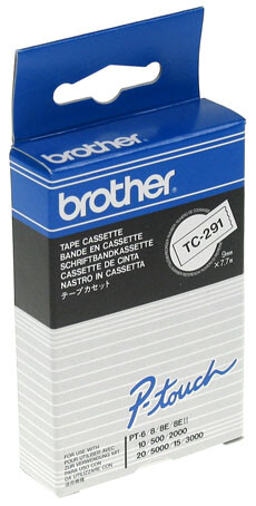 Páska BROTHER plastová samolepicí šíře 9mm, černý tisk na bílé pásce, návin 7,7m
