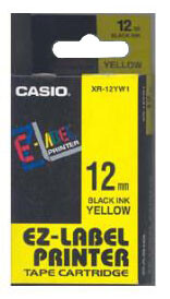 Páska CASIO originální plastová samolepicí šíře 12mm, černá na žlutém, návin 8m