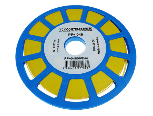Plastový pásek pro kapsy PM, PTM a pouzdra PT, PTC šíře 4,6mm, návin 17m, barva žlutá