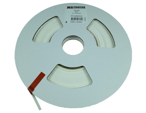 Plastový pásek pro kapsy PM, PTM a pouzdra PT, PTC šíře 4,6mm, návin 50m, barva bílá