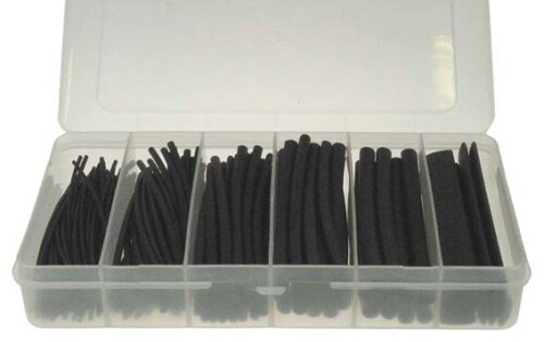 Sada smršťovacích trubic HTI v plastovém boxu - černé, samozhášivé