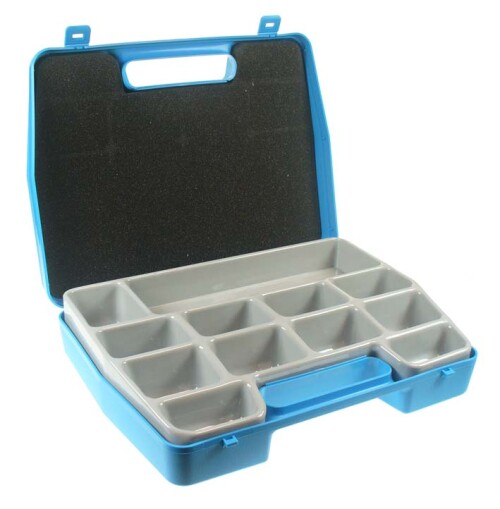 Servisní kufřík velký plastový prázdný pro kleště a koncovky, 12-ti dílný